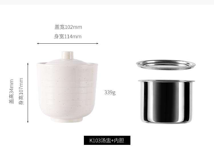 • K103产品尺寸 直径11.4cm 高10.7cm 340克 容量毫升