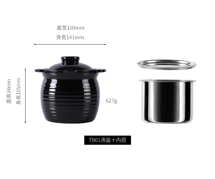 • TB01产品尺寸 直径14cm 高10.5cm 630克 容量毫升