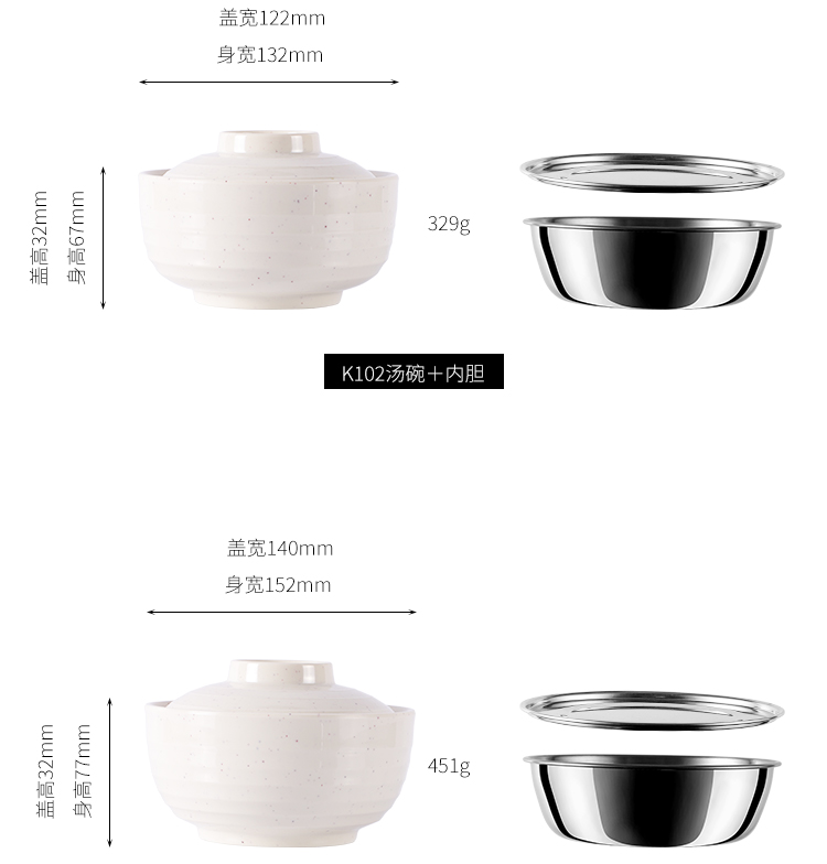 • K102产品尺寸 直径13.2cm 高6.7cm 330克 容量毫升